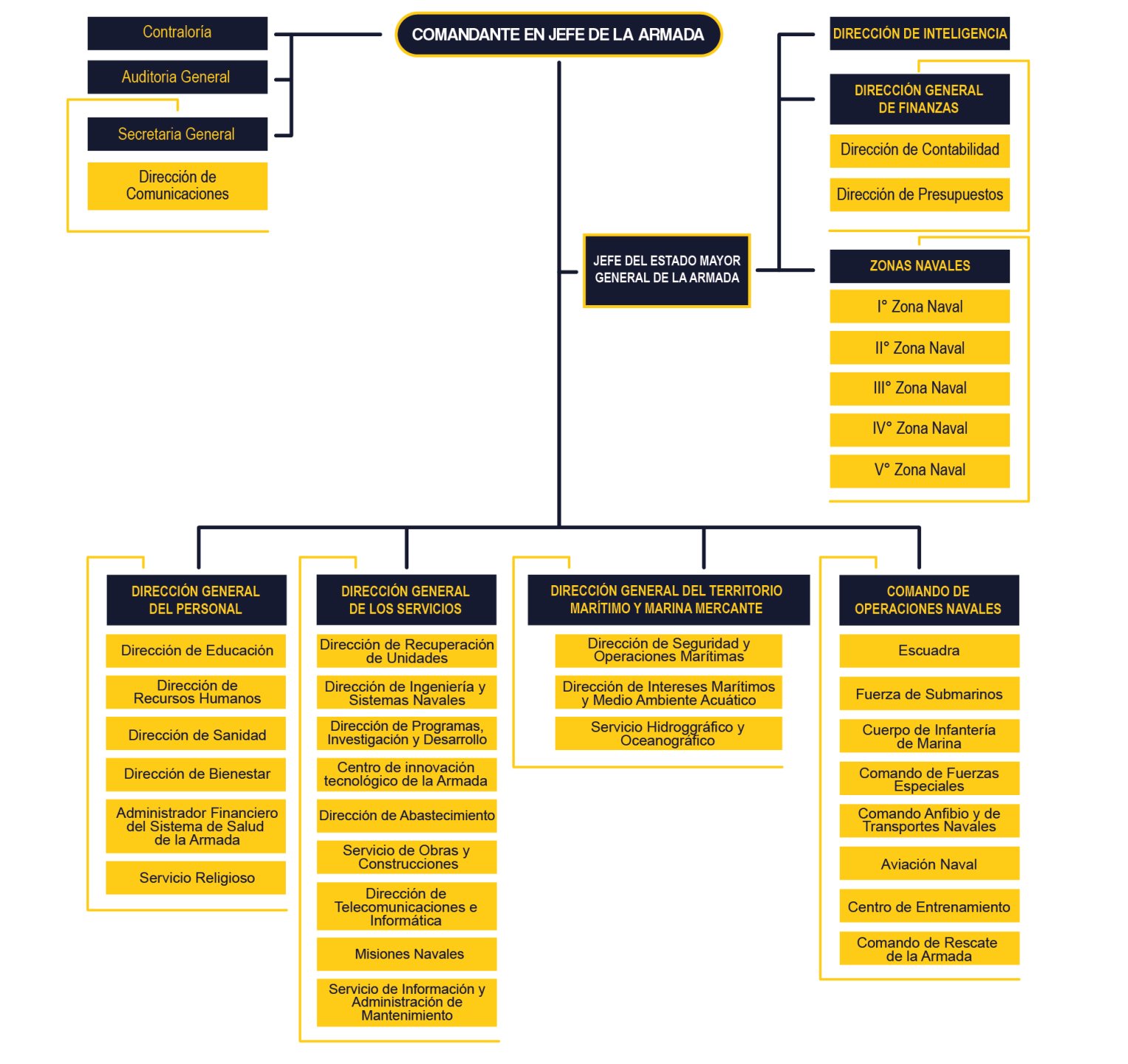 La Armada se encuentra organizada de tal forma que cumpla con los roles y las tareas asignadas.