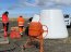 El desplazamiento al lugar de las operaciones fue bimodal, considerando desplazamiento por tierra desde Punta Arenas a Punta Delgada, cruce en ferry de conexión hasta el área de bahía Azul para posteriormente seguir por tierra hasta el lugar de las operaciones, distante aproximadamente a 3 horas y media de Punta Arenas.